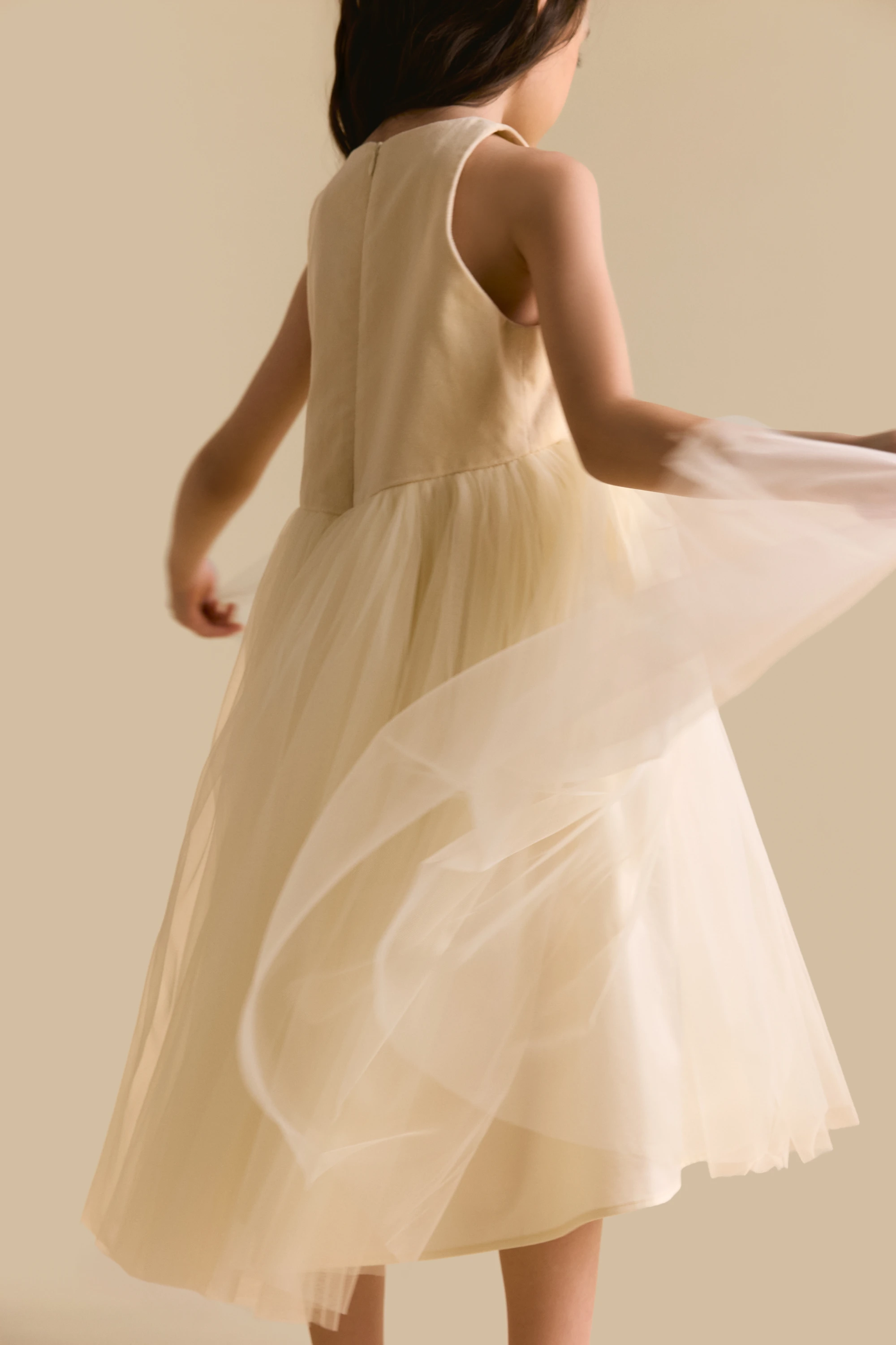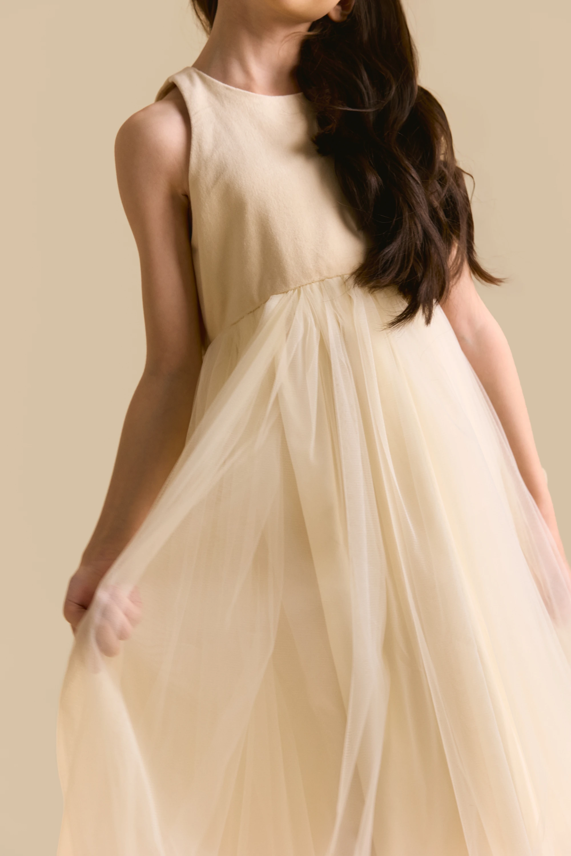 Платье из премиальных тканей А-силуэта с воздушной сеткой нежного