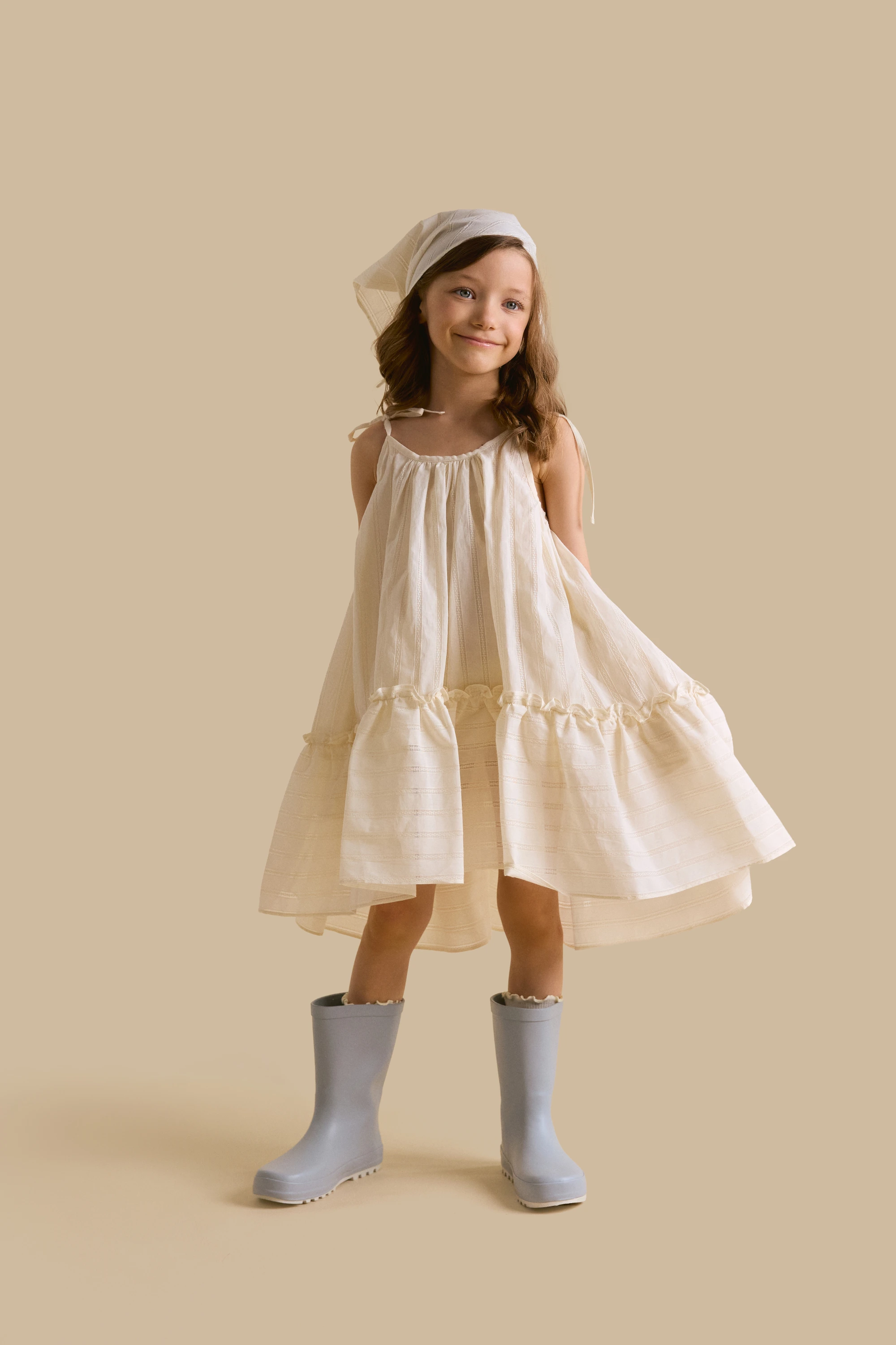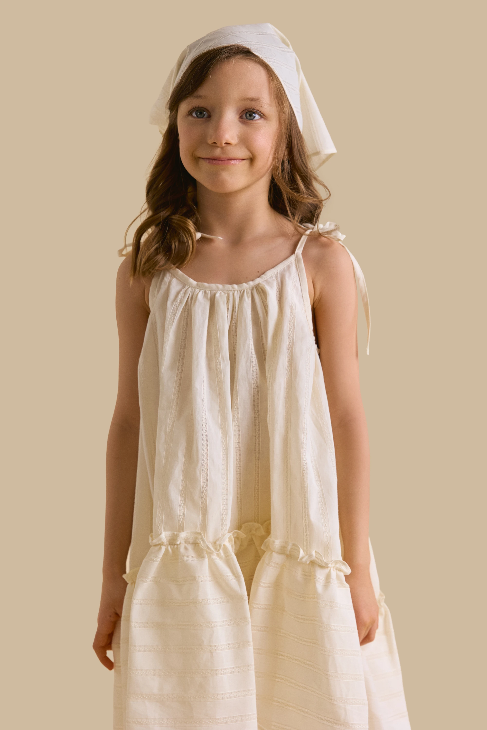 Мы создали этот сарафан из премиального шитья в молочном и