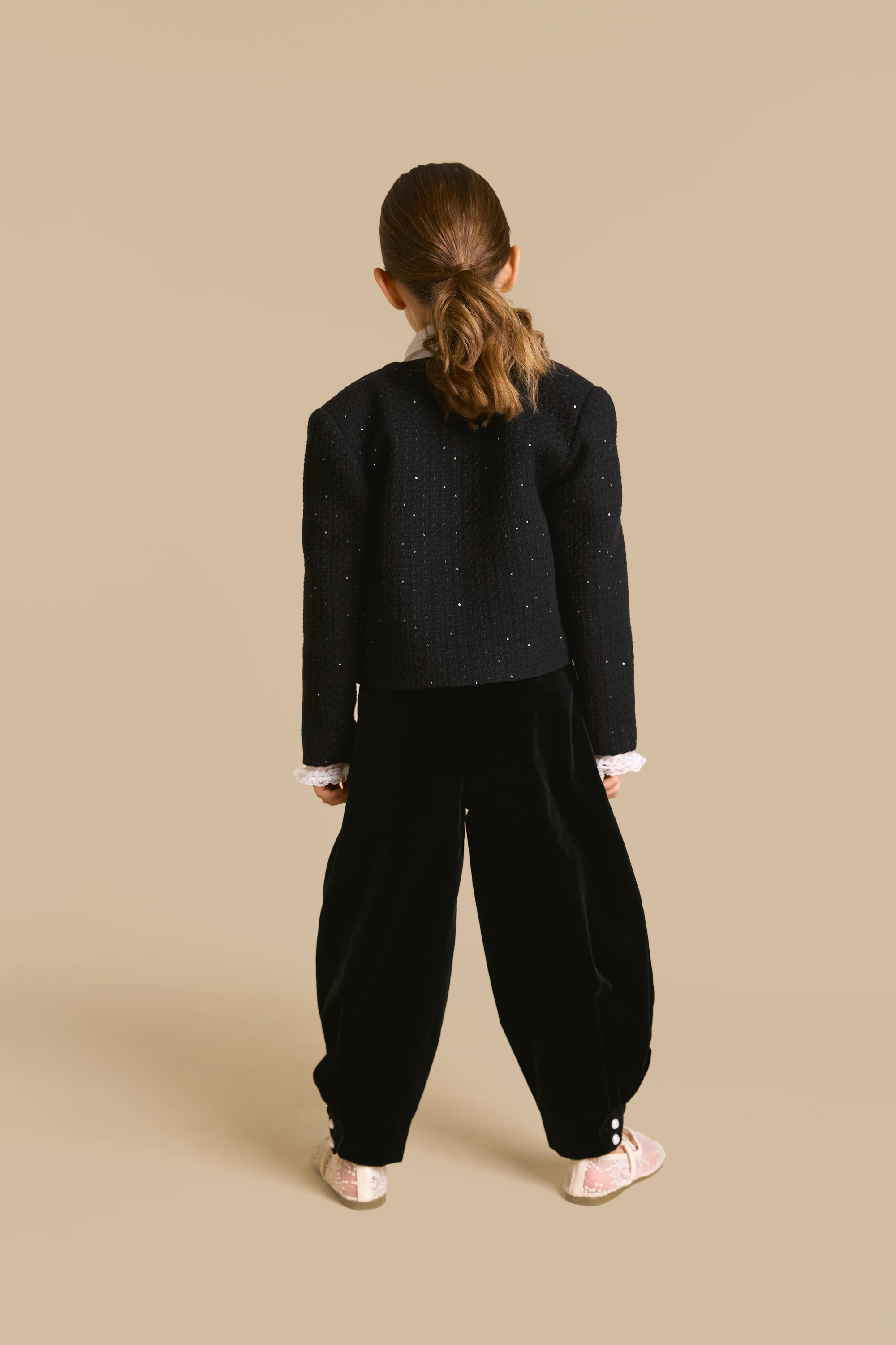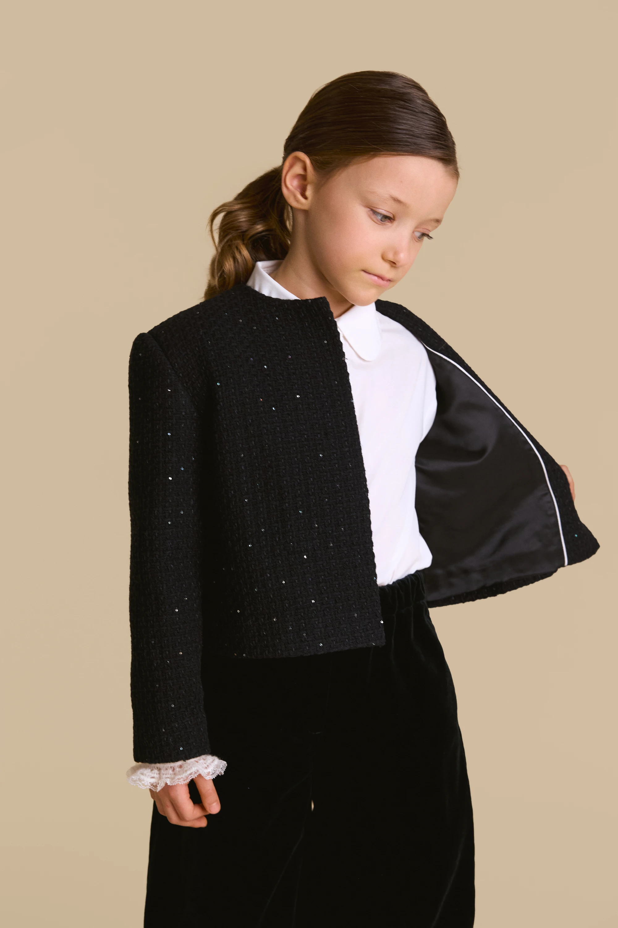 Жакет черный твид пайетки с манжетами